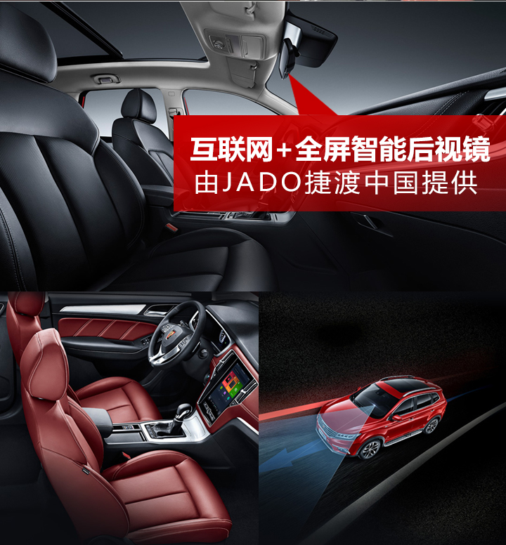 作為榮威RX5內飾中最大的亮點,據悉,該款互聯網+全屏智能后視鏡來自于榮威RX5在行車記錄儀行業唯一的合作方——JADO捷渡中國,其互聯網+全屏智能后視鏡,具有智能語義交互、主動安全行車、娛樂休閑等功能,在后視鏡行車記錄儀行業首屈一指,這也是為什么上汽和阿里巴巴選擇了它作為車內后視鏡出現在此次大型發布會上。