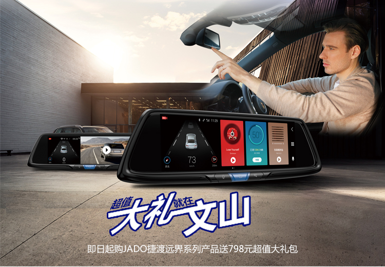 E路驚喜,城市聯合風暴,裝機有禮!JADO捷渡云南文山行,帶給車主一款互聯網+全屏智能后視鏡產品,體驗人機智能交互,行車安全小秘書。
