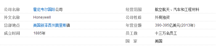 以上內(nèi)容來(lái)自于百度百科,欲了解更多關(guān)于霍尼韋爾,可瀏覽其官方網(wǎng)頁(yè)。http://www.honeywell.com.cn/