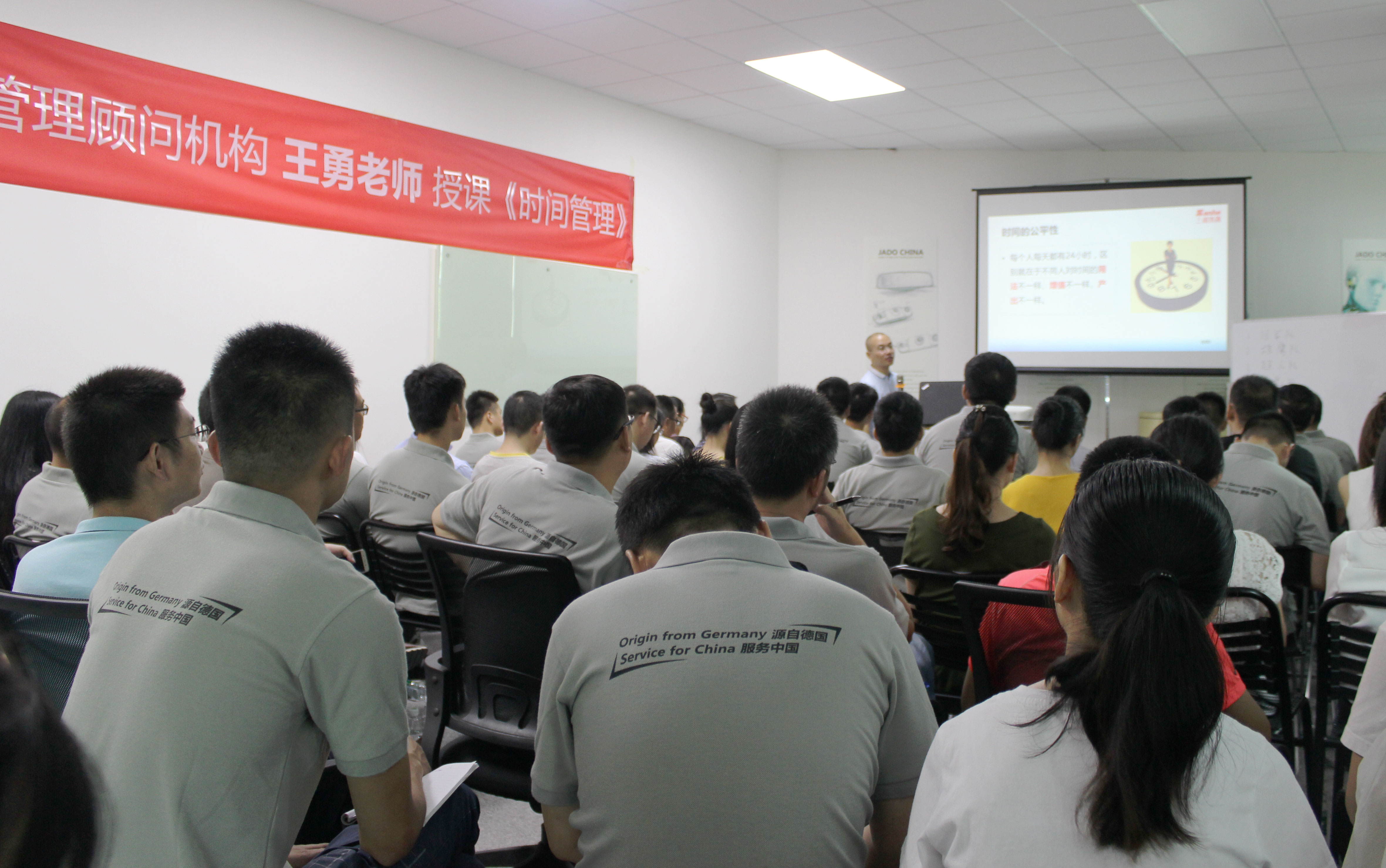 2017年7月2日,JADO捷渡智能(中國)研修院在深圳生產基地多功能會議室,邀請三和管理顧問機構王勇老師,對JADO捷渡智能(中國)研修院人員進行第一節企業內訓課程《時間管理》,并通過直播平臺在線直播。