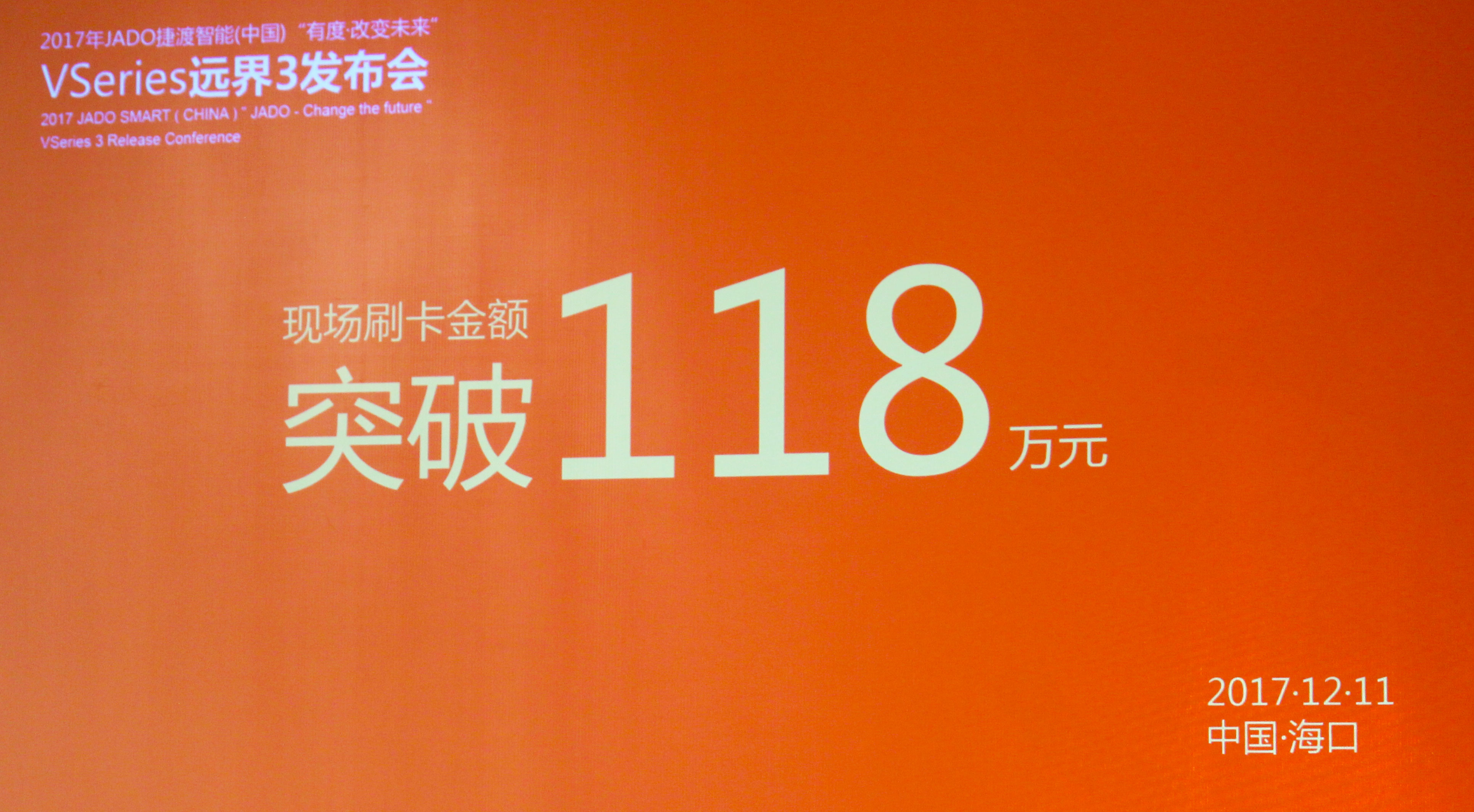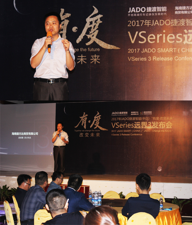 2017年12月11日,以“有·度——改變未來”為主題的“JADO捷渡智能(中國)VSeries遠界3超高清智能流媒體后視鏡發布會”在??谥秀y海航國商酒店完美落幕。本次活動由JADO捷渡智能(中國)海南省區戰略合作伙伴海南捷方達商貿有限公司主辦。