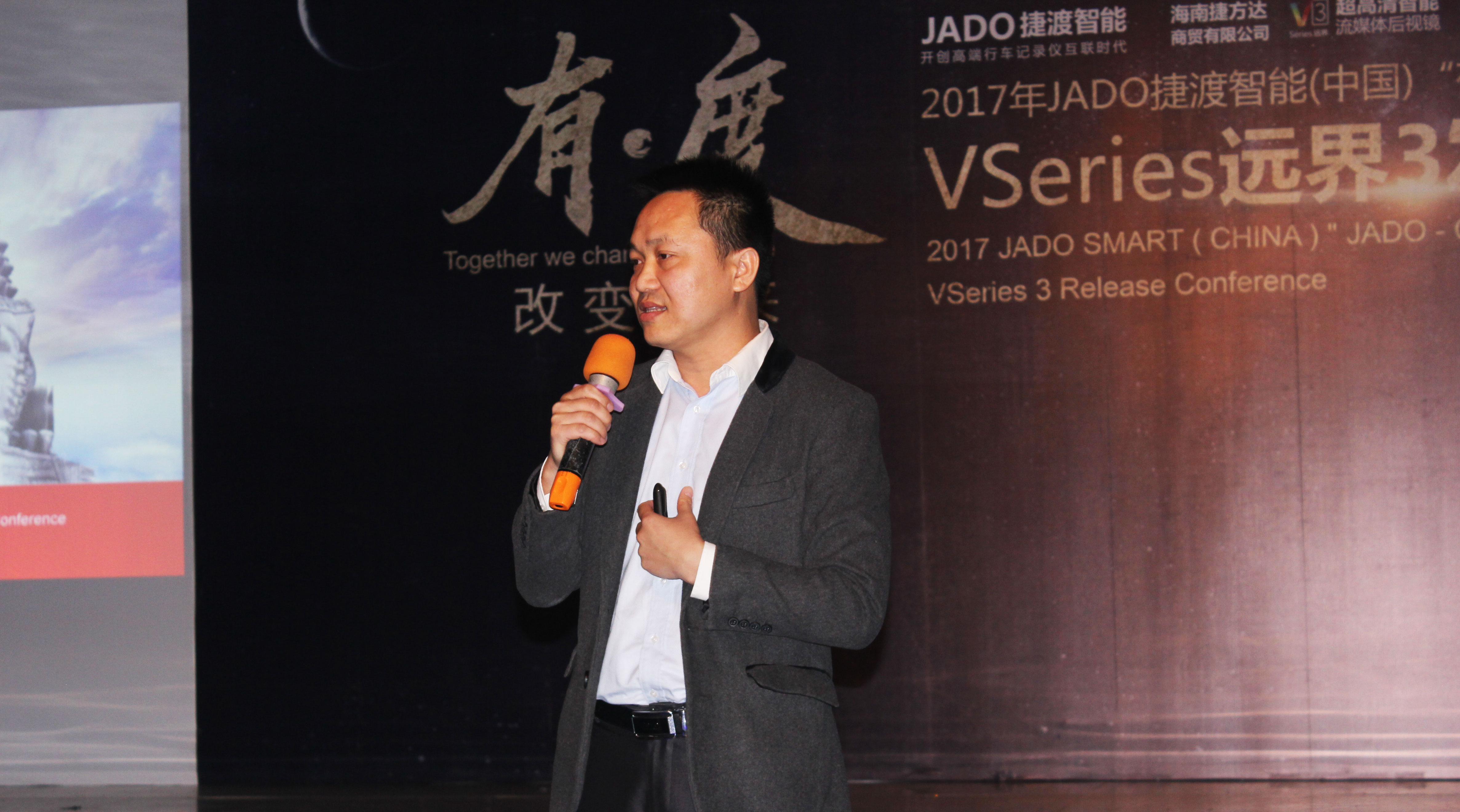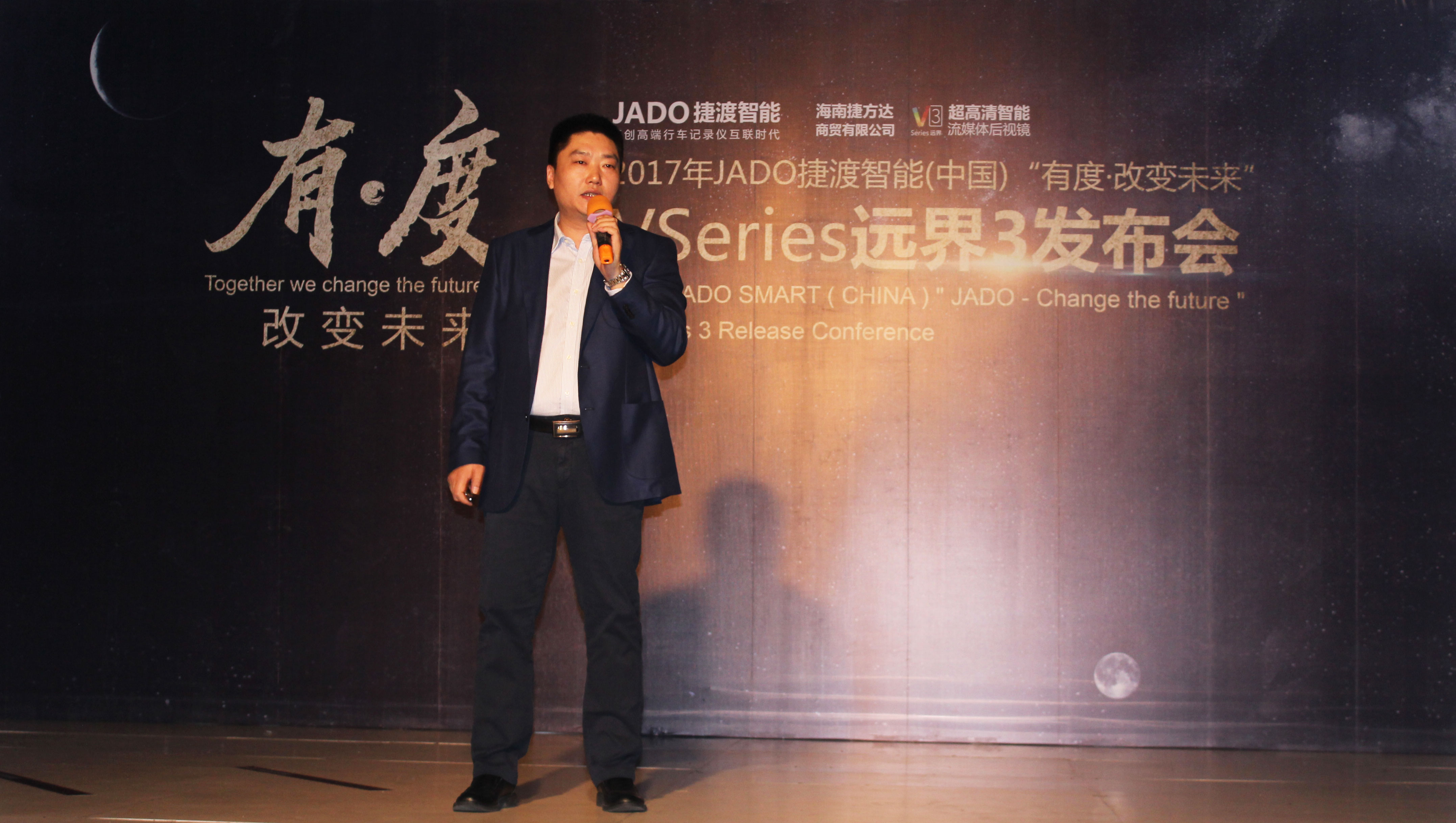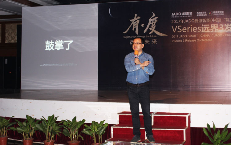 JADO捷渡智能(中國)產品總監吳樂明先生上臺致辭,重點為大家闡述了 VSeries遠界系列產品的設計理念。前裝與后裝并存、專業與智能的完美融合,VSeries遠界3給了大家一個最佳的選擇。