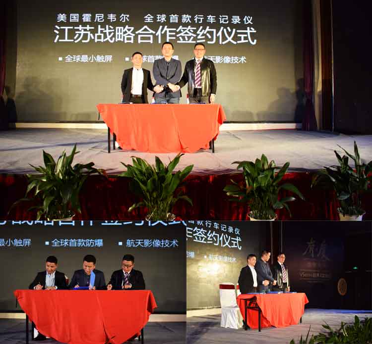 JADO捷渡智能(中國)營銷中心總經(jīng)理陳問文先生與揚州天泓汽車貿(mào)易有限公司總經(jīng)理施德春先生、蘇州天通汽車服務(wù)有限公司總經(jīng)理周林海先生進(jìn)行了霍尼韋爾行車記錄儀在江蘇地區(qū)的簽約授權(quán)儀式,這標(biāo)志著霍尼韋爾行車記錄儀開啟了江蘇區(qū)域市場。