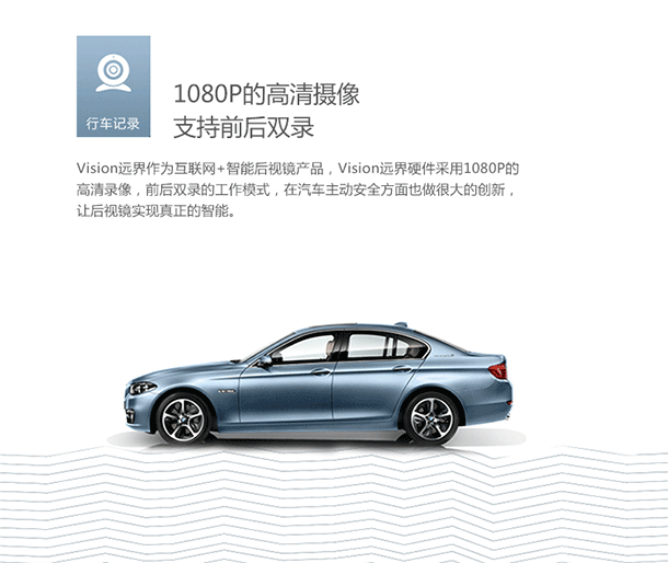 Vision遠界作為互聯(lián)網(wǎng)+智能后視鏡產(chǎn)品,硬件上采用了1080p的高清錄像,前后雙錄的工作模式,可以對當前行駛車輛的前后視頻同步高清錄影,無論前車碰撞或后車追尾,都能清晰拍攝到牌照,對突發(fā)的交通事故可提供有效的視頻證據(jù)。