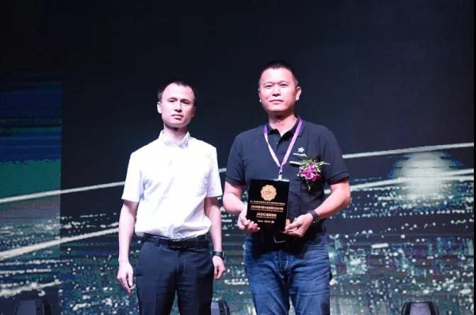 接下來是大會(huì)的頒獎(jiǎng)環(huán)節(jié),由廣匯集團(tuán)集采總經(jīng)理 何思先生為JADO捷渡智能(中國)頒發(fā)了“2018年度中國4S店集團(tuán)杰出合作獎(jiǎng)” 獎(jiǎng)項(xiàng),JADO捷渡智能(中國)總經(jīng)理陳問文先生代表JADO捷渡智能(中國)上臺(tái)領(lǐng)獎(jiǎng)。