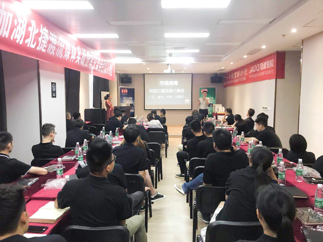 為了抓住時代機遇,實現財富增長。2018年7月15日,JADO捷渡智能(中國)攜手武漢偉鵬汽車影音有限公司,在武漢市硚口區共同舉行了“VSeries遠界核心店交流培訓會(武漢站)”。來自湖北省的60余家JADO捷渡智能(中國)授權終端店參加了此次會議,一起探討流媒體未來之路和分享成功經驗。
