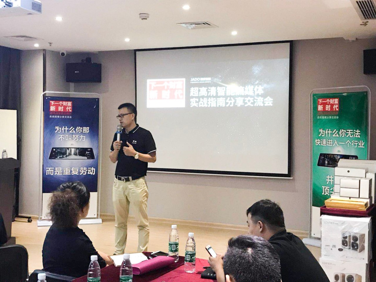 會上,JADO捷渡智能(中國)戰區負責人杜新先生,也做了分享和交流,杜新先生首先為大家分享了VSeries遠界3——超高清智能流媒體后視鏡產品的銷售技巧, 講解了產品在未來的發展空間和趨勢,年輕化和創新的商業模式將會成為新一代的主流。并通過對目前全國一些優秀終端店的成功經驗的總結,以及不同區域的市場特點的分析,讓現場60余家終端店老板獲取到了有價值的分享,將此次交流培訓會推向了高潮。