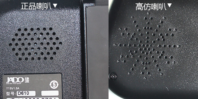 4、 看喇叭孔:正品捷渡 D610 是規矩的六角形;高仿 D610 日喇叭孔,是放射的"米"字形,也比正品捷渡 D610 花哨點。讓圖說話: