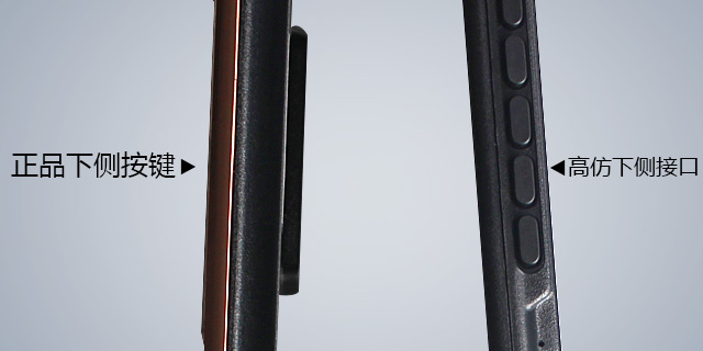 看產品側面,僅做工工藝就可以很明顯地看出正品捷渡 D610 與高仿的區別: